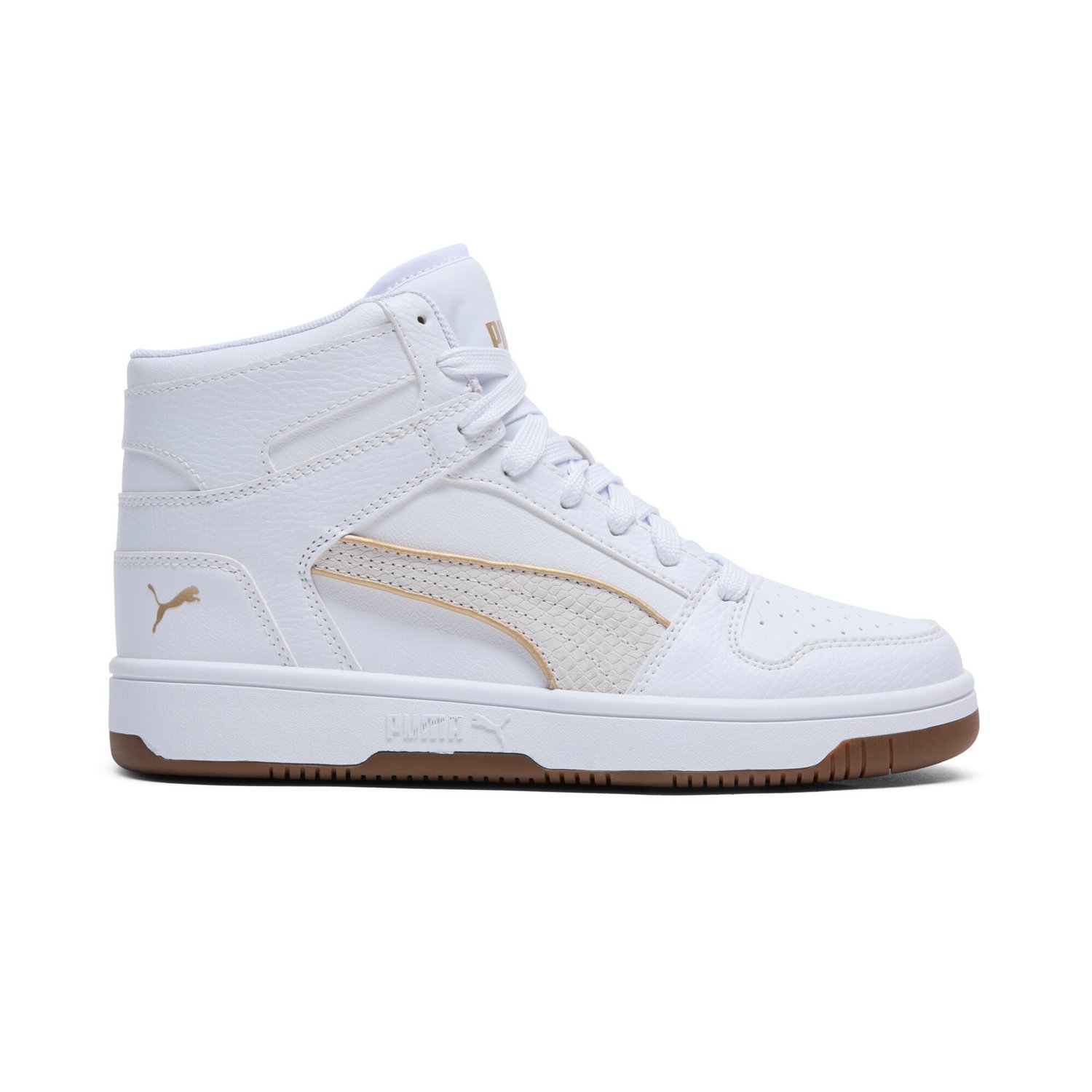 Step onto the scene in a sneaker that blends vintage court style with modern-day comfort. The Puma Women's Rebound Layup channels a retro basketball vibe with its classic mid-top silhouette and bold design. You’ll feel secure and supported thanks to the plush padded collar and soft cushioned sockliner. Built for the street, these sneakers feature a durable rubber outsole for reliable everyday traction. Lace up and make a statement with this effortlessly cool, athletic-inspired look.