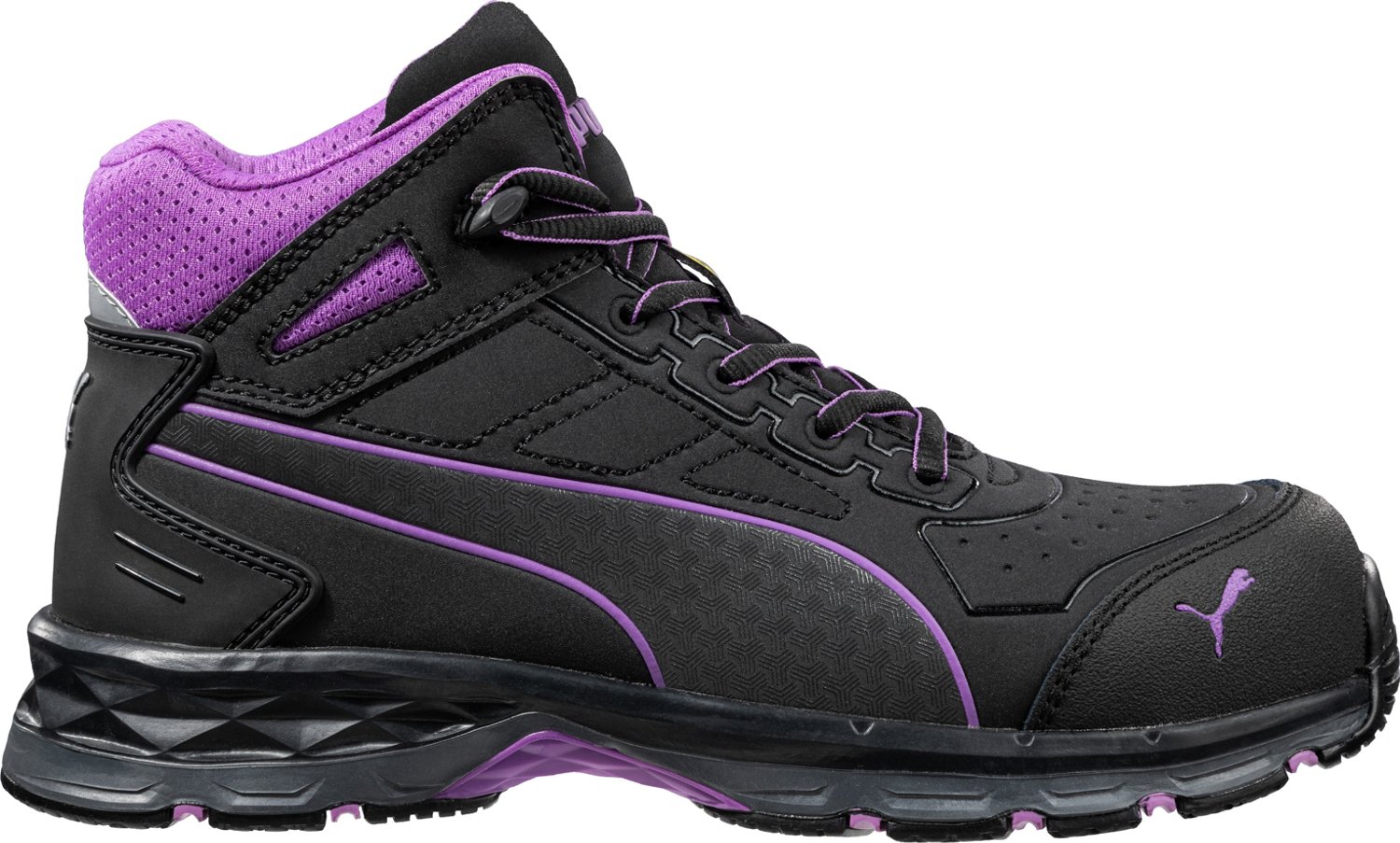 Step to it with the PUMA Women's Safety Stepper 2.0 Work Boots. The textile and full grain leather uppers afford durability, while the IMPULSE FOAM midsoles provide cushioned comfort. The rubber outsoles are oil and slip resistant for grip, and the BreathActive functional linings promote breathability.