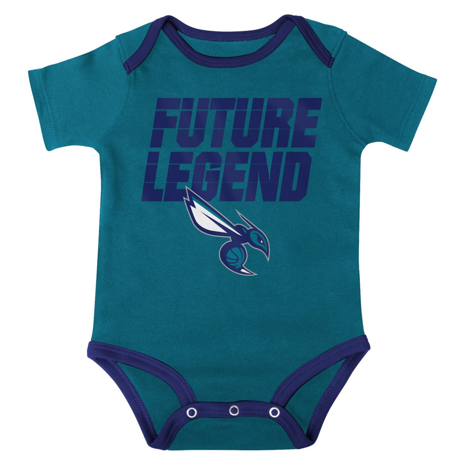 Help your youngster show off their newfound fandom by grabbing this Charlotte Hornets Bank Shot set This incredible set features a bodysuit hoodie T-shirt and shorts and features bold Charlotte Hornets graphics The lap shoulder neckline and three snaps at the bottom of the bodysuit make for easy dressing The shorts and hoodie tee are great as addons or independently Either way you'll be helping them get the ball rolling on a lifetime of Charlotte Hornets love