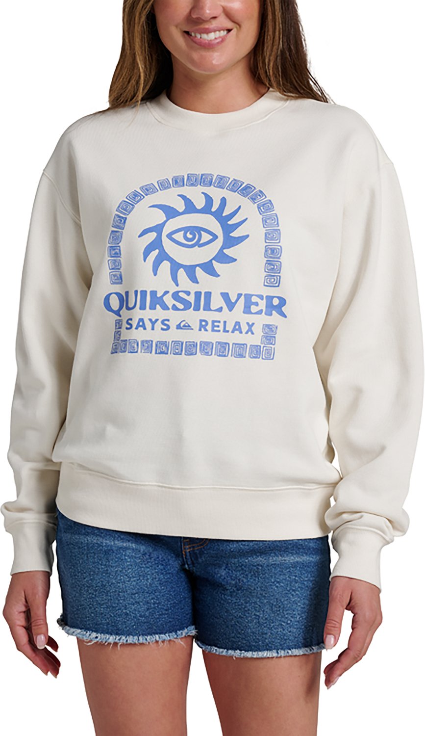 Relax by the water or on the couch in this Quicksilver Women's Relax Crewneck Sweatshirt. It is made of 65% recycled polyester and 35% cotton for a soft and breathable feel, and the sweatshirt features long sleeves with ribbed cuffs to help prevent them from slipping. "Quicksilver Says Relax" wordmark on the chest.