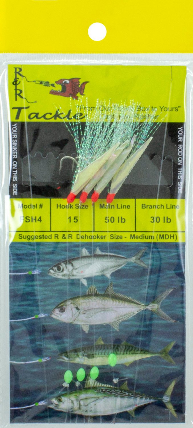 R&R Tackle FSH4 Sabiki Hooks with Flash and Fish Skin 4 Hooks