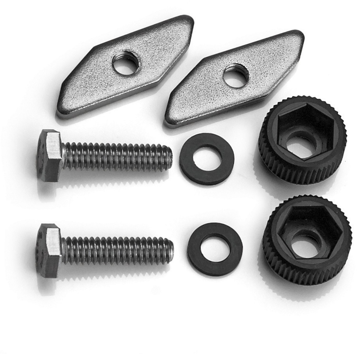 Includes two hex-head machine screws, two track inserts, two track nuts and two spacer washers