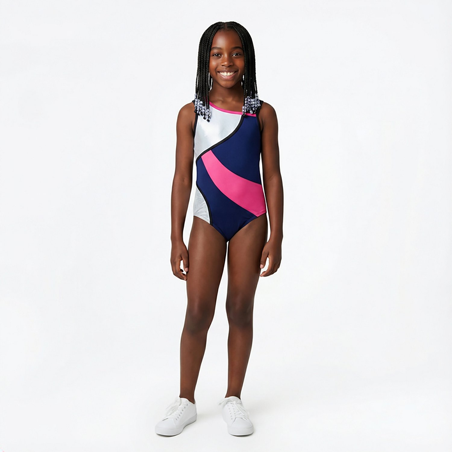 Showcase your skill with the Rainbeau Moves Girls' Colorblock Tank Leotard. The polyester and spandex material provides a comfortable feel, while the moisture wicking technology helps keep you cool and dry. The printed graphic offers a stylish look.