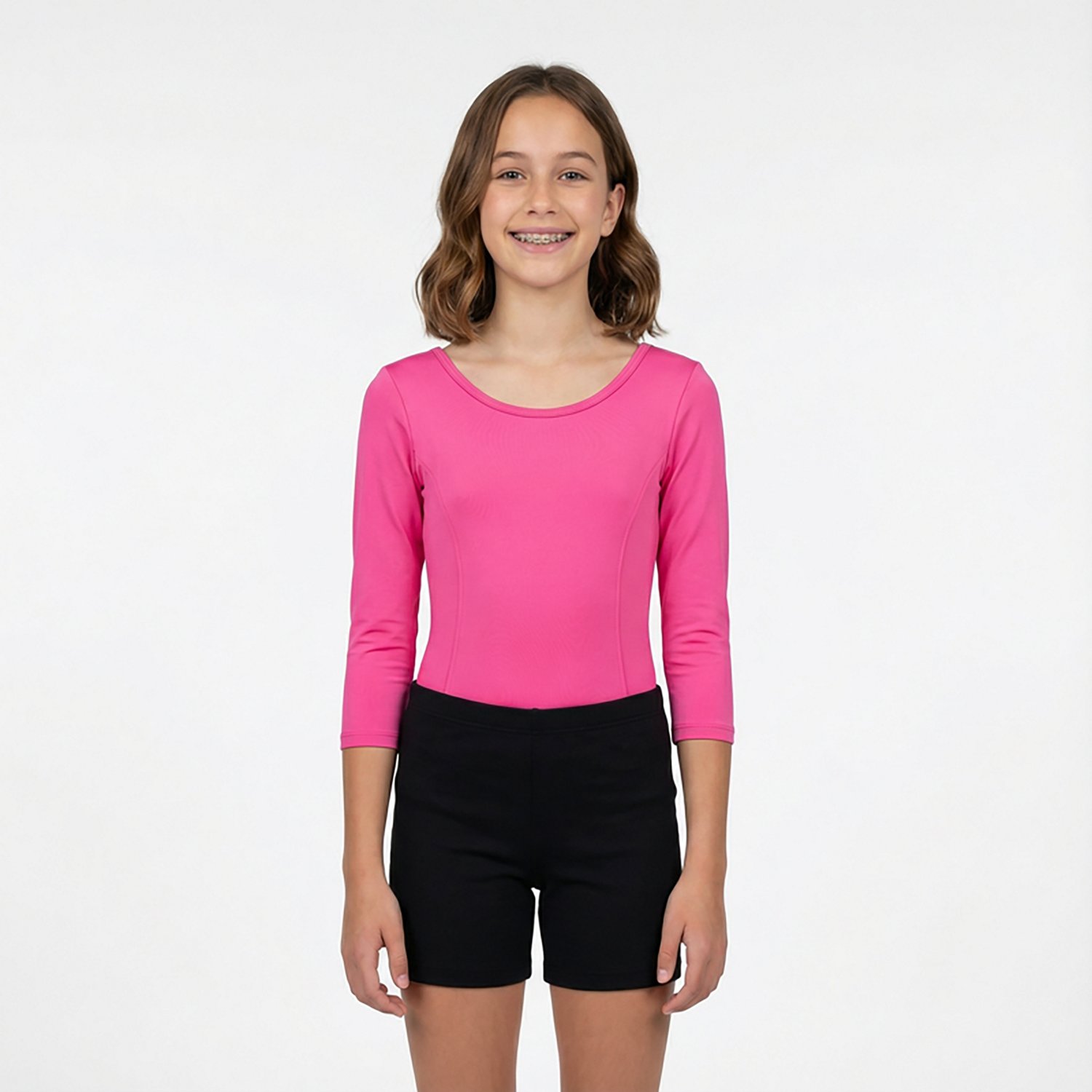 Showcase your talent in style and comfort whenever you wear the Rainbeau Moves Girls' Criss Cross Strap 3/4 Sleeve Leotard. The polyester and spandex fabric offers a lightweight, stretchy fit and features wicking technology to help you stay dry and comfortable. The front princess seams and strappy back detail add an eye-catching appearance to your look.