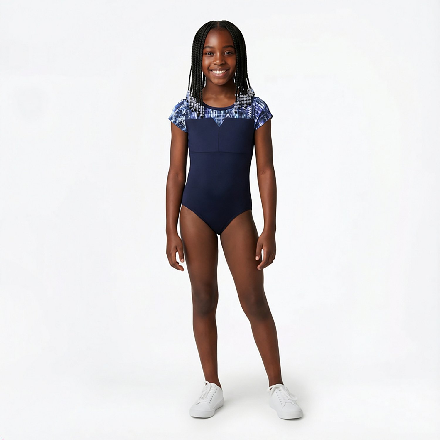Rainbeau Moves Girls' Seismic Waves Stripe Short Sleeve Mesh Leotard