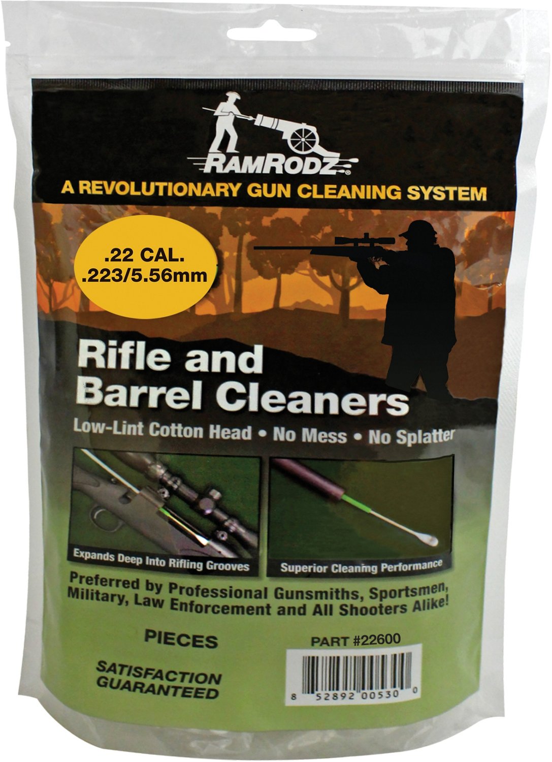 Use the RamRodz 5.56 mm/223 Cal. Rifle Barrel Cleaner 600-Pack to clean 5.56 mm/223 caliber rifles. Designed with eco-friendly materials, this rifle cleaner is made of cotton and bamboo for gentle cleaning. The rifle cleaner includes 600 per bag and is made in the USA.