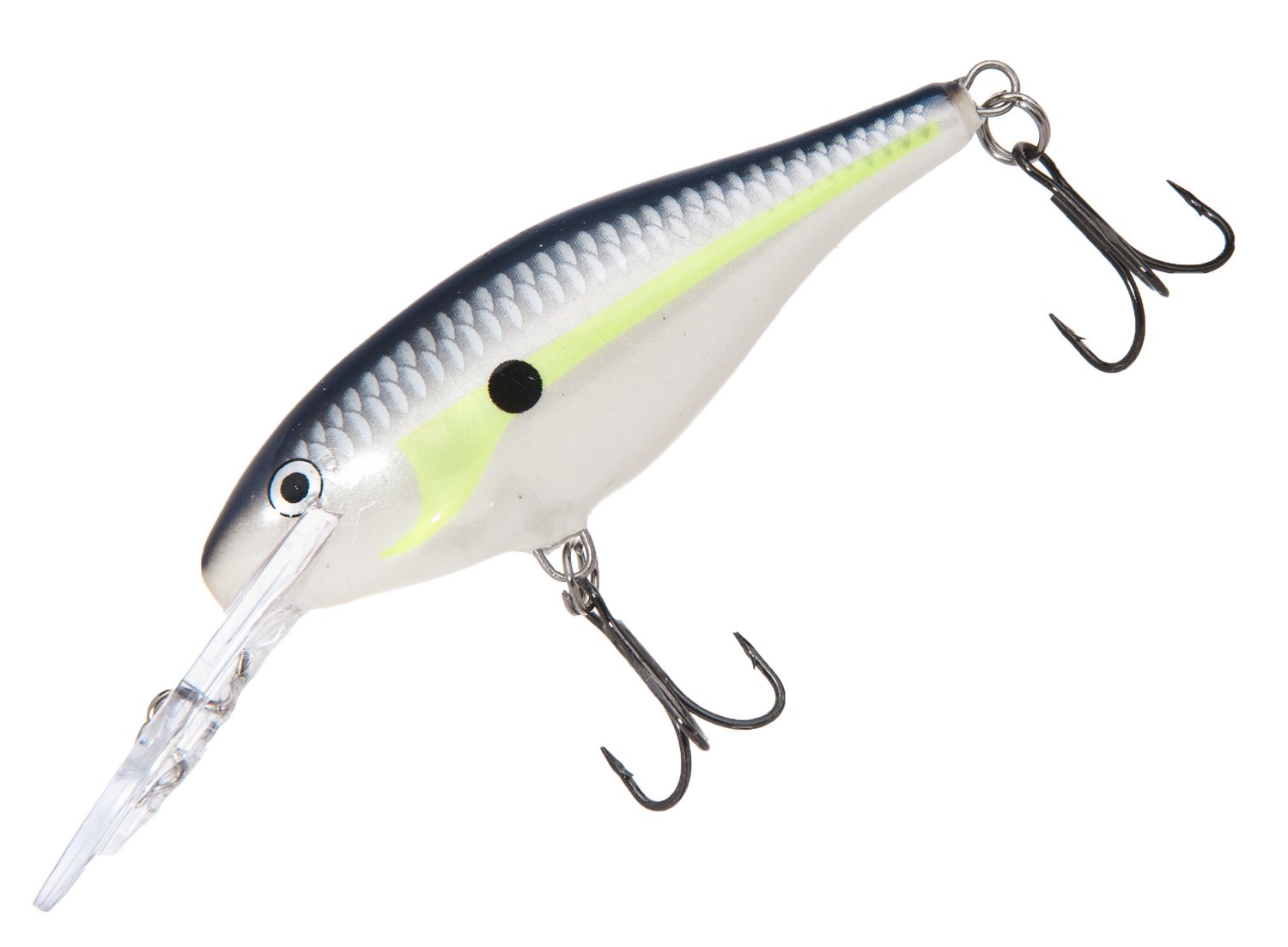 Arm your tackle box on your next fishing trip with the Rapala® Shad Rap® 2-3/4" Crankbait. It is designed for casting and trolling at slow or fast speeds without a negative effect, and the swimming action provides realistic movement to attract fish. Two No. 5 treble hooks secure your catch.