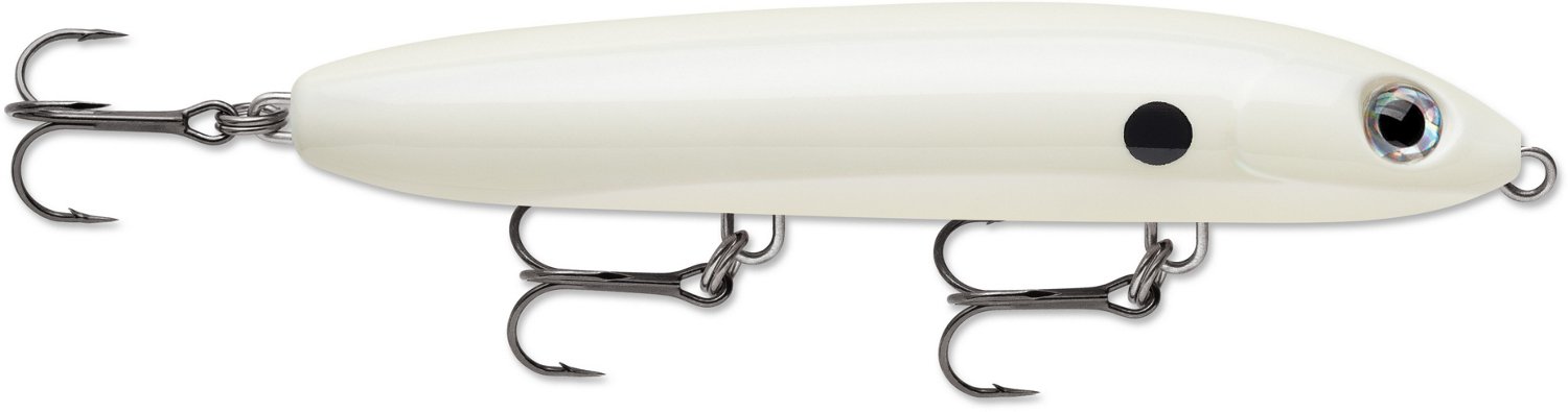 Don't go home empty-handed on your next fishing trip by using the Rapala Skitter V Series 5-1/4 in Topwater Bait. This hard bait is constructed with a realistic translucent body and 3-D holographic eyes to help draw the attention of trout/redfish. The V-hull design and tail-weighted balance allow the bait to cut quick at the snap of the rod, finishing off with a soft, long glide. 1 ounce. 5-1/4 inches.