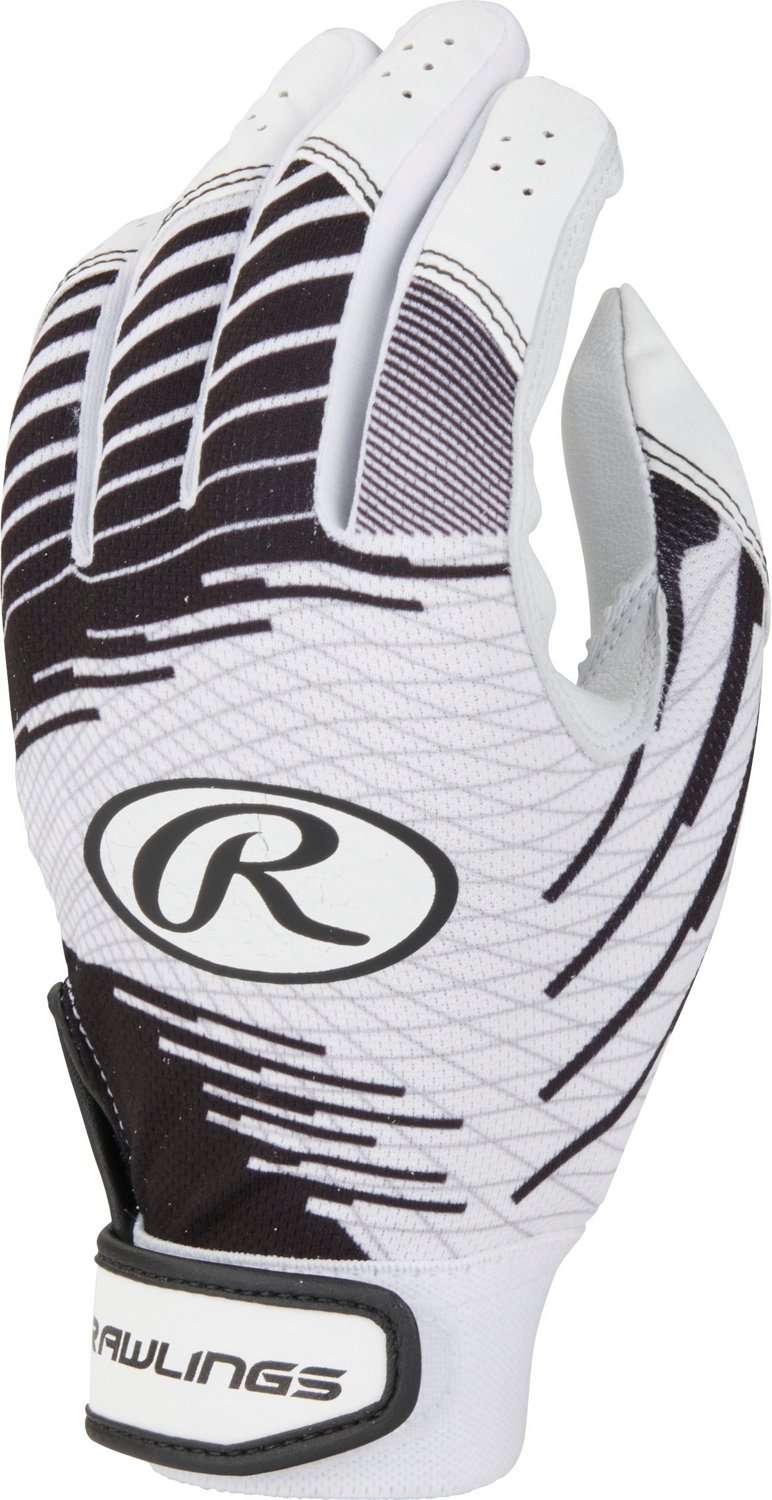 Secure your grip on the bat with Rawlings Adult Prodigy Fastpitch Batting Gloves. The synthetic leather palms lend a soft feel and are debossed to deliver extra grip. Lycra finger gussets and sublimated mesh contour to your hands while enhancing ventilation for game-long comfort.