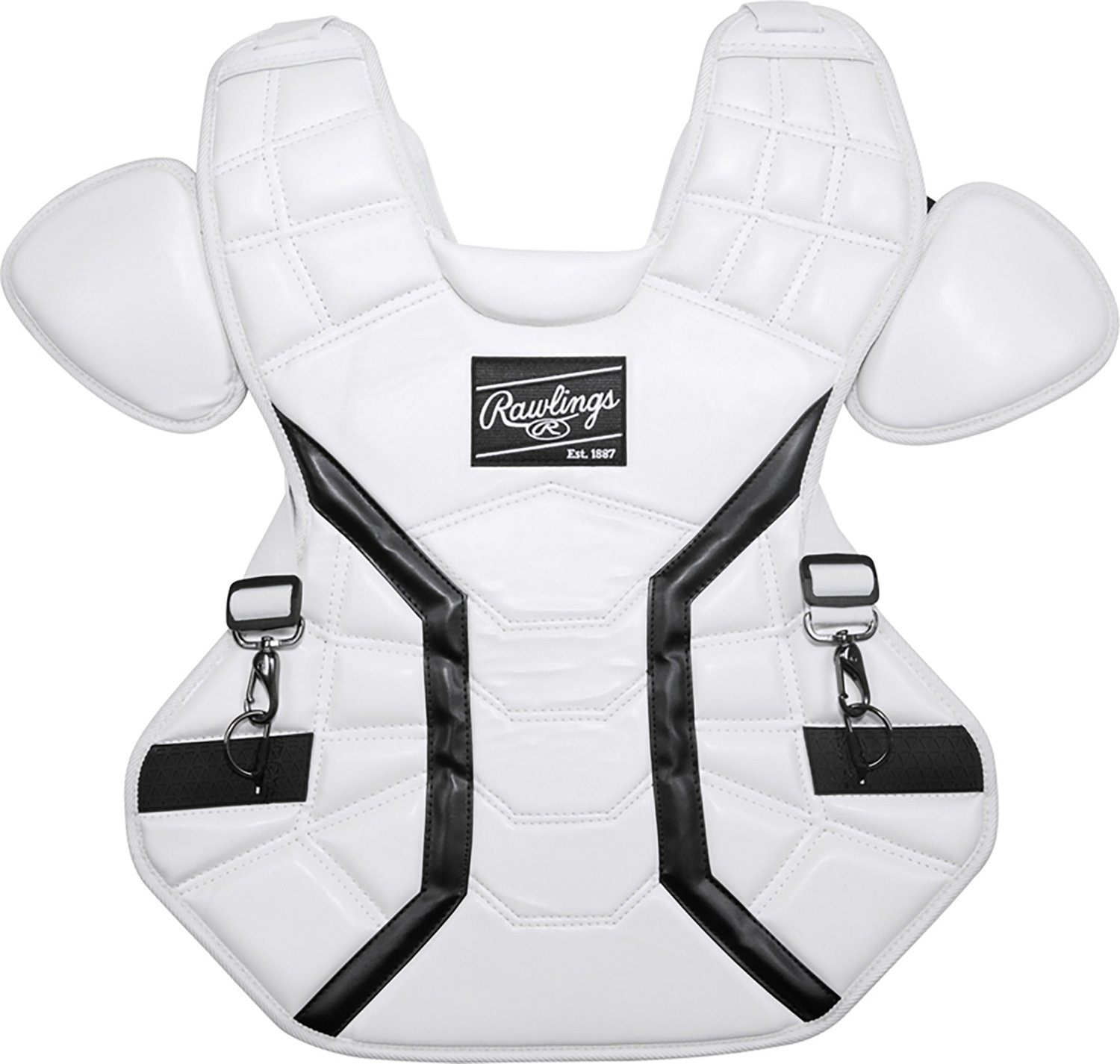 Play your best when you wear the Rawlings Adults' Mach Pro Series Adjustable Fit Chest Protector. Its 2-tone padding enhances protection. The Dynamic Fit System™ provides a flexible fit, and its memory foam padding and removable shoulder pads enhance comfort. The PE plate insert delivers additional security.