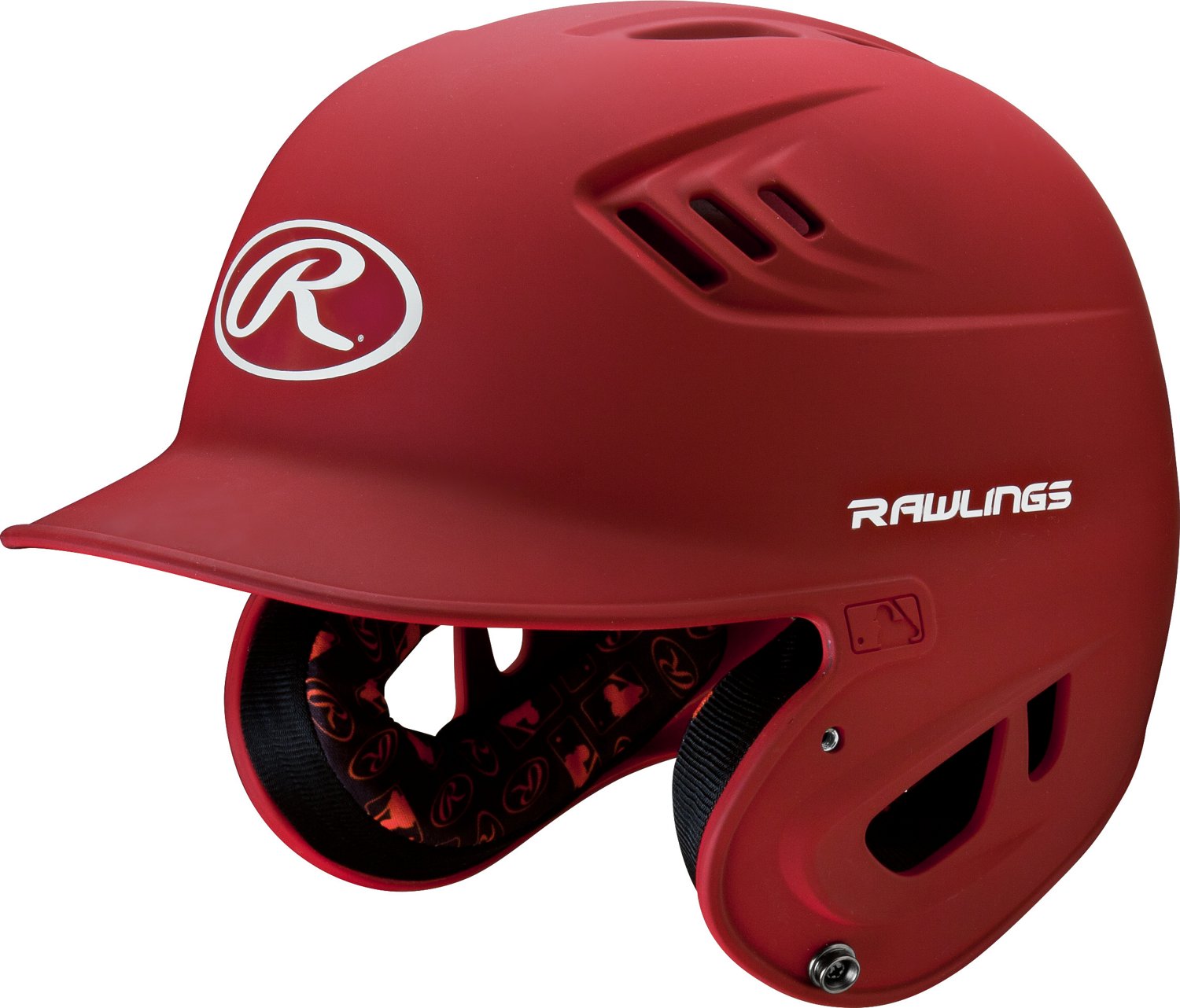 Stay comfortable at the plate with the Rawlings® Adults' R16 Matte Finish Batting Helmet. This helmet features a 16-vent design with Coolflo® XV1™ venting and Heat Exchange™ vents that rapidly circulate cooler, ambient air. With its wrapped jaw pads and a matte finish, this helmet provides comfortable and stylish protection. Meets NOCSAE® standards.