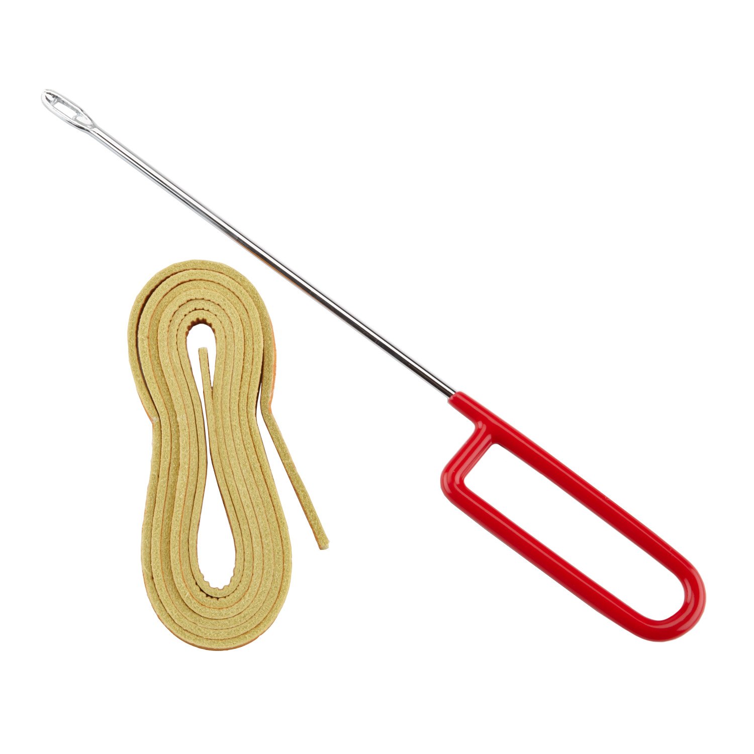 Awl-type steel lacing tool with a coated handle for a firm grip and a 5-inch plated steel needle for durability
