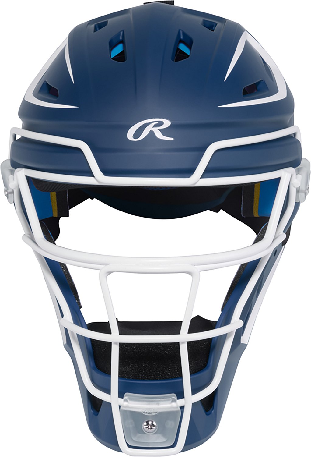 Protect your little one's head when they wear the Rawlings Kids' Junior Mach Pro Series Hockey Style Catcher's Helmet. Its Mach Pro pad liner wicks moisture. keeping them cool. The recessed cage system improves sightlines while enhancing stability, and its IMPAX high-performance padding absorbs impact. The 3-way adjustable back plate and soft chin pad help them find the perfect fit.