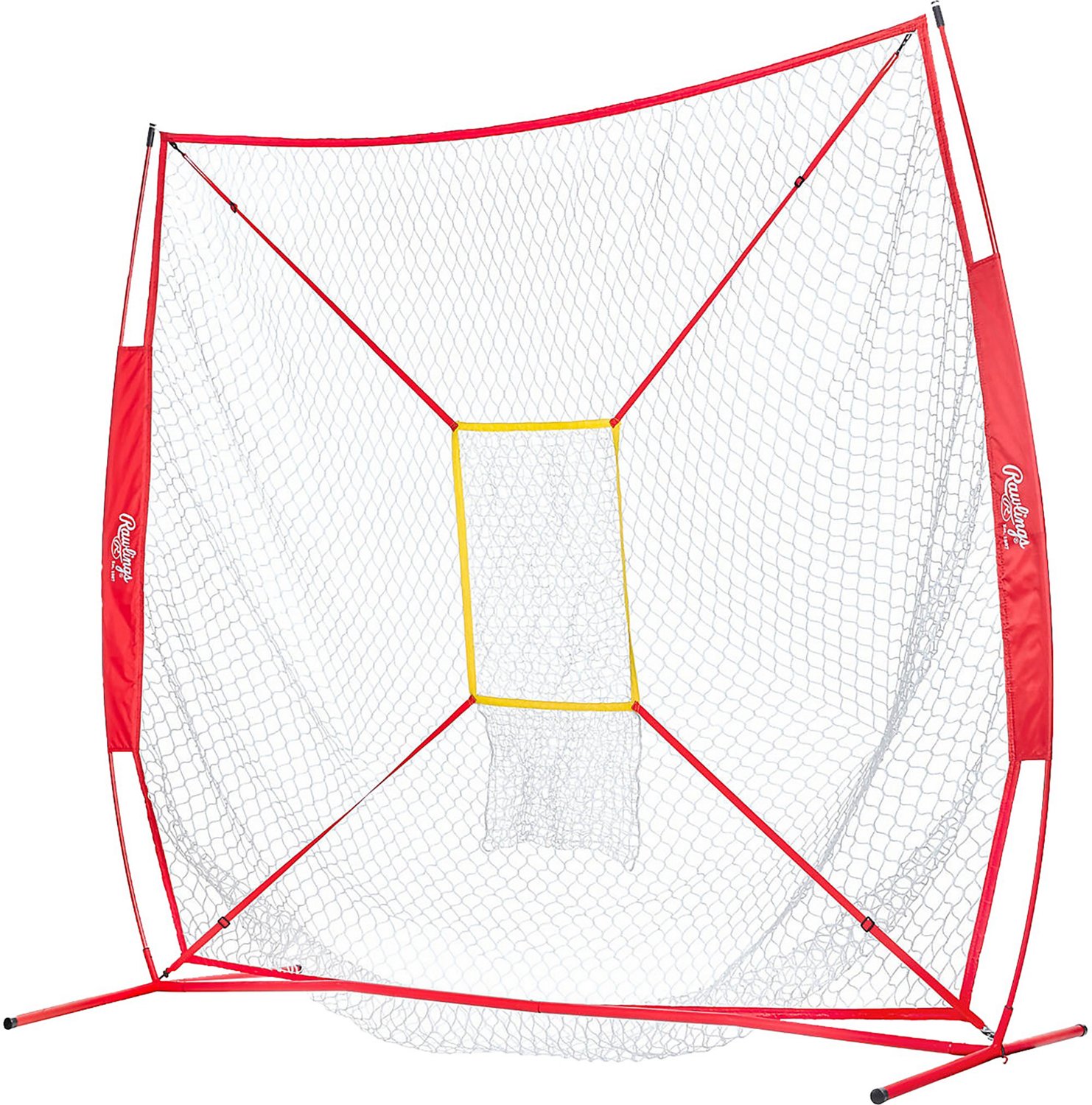 Practive hitting, pitching, fielding and throwing skills with the Rawlings RBI 7 ft x 7 ft Instant Net. The pitching target helps improve accuracy, while the galvanized steel frame, nylon netting and fiberglass poles afford durability.
