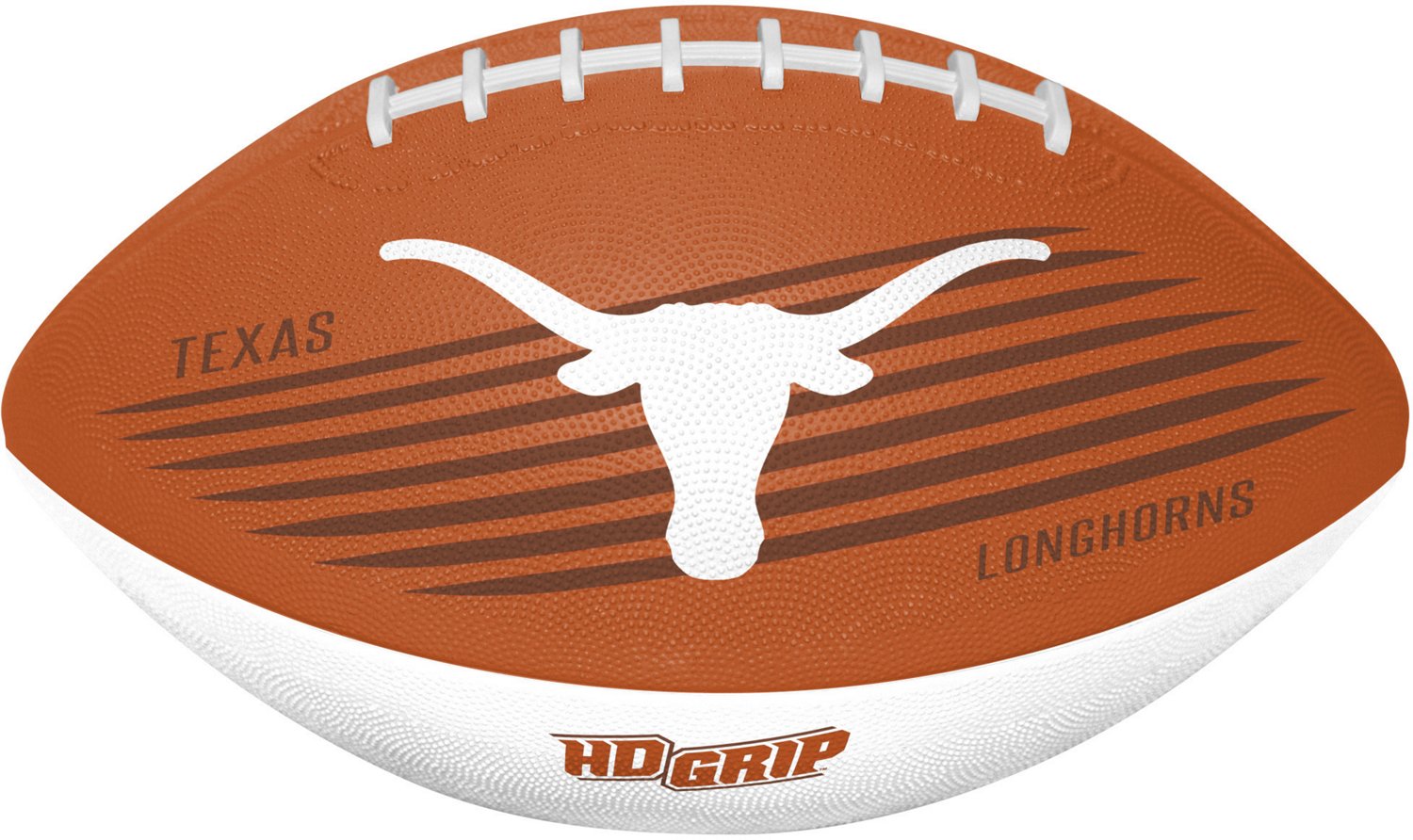 Enjoy a game of catch in your backyard or at the next Longhorns tailgate with the Rawlings University of Texas Youth Downfield Rubber Football. The laces help make sure each toss is accurate, while the Texas logo puts your fandom on display for all to see. Check out Academy.com for more NCAA accessories.