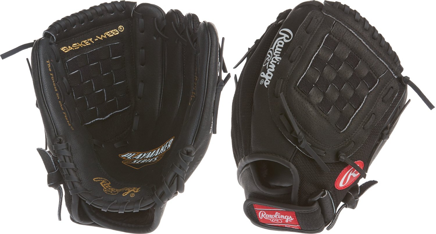 Rawlings® Youth Playmaker 11" Baseball Glove. Step out onto the field and be ready to catch the ball as it heads your way with this glove, which features a leather palm for durability. The Neo Flex hinge back has a hook-and-loop strap for a secure fit.