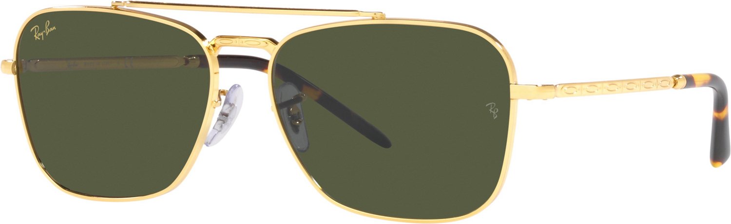 Complement your favorite look with Ray-Ban Men's New Caravan Sunglasses. The slim metal frame is elevated by engraved posts and a double bridge, while the blocky shape and tinted lenses deliver crisp modern style.A brand logo on the left lens elevates your style.