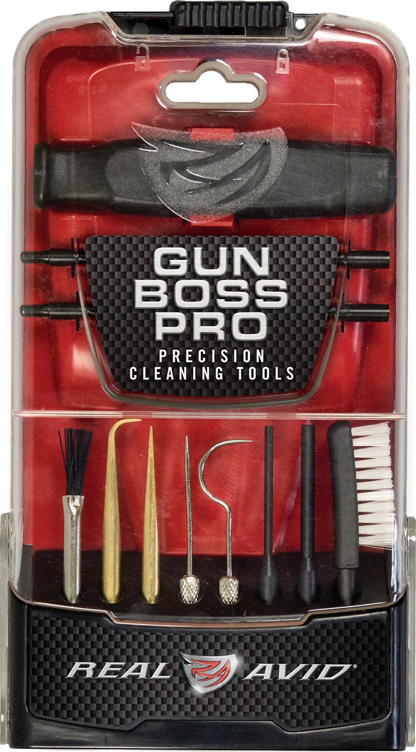 Great for cleaning and detailing a variety of firearm types, the Real Avid Gun Boss Pro Precision Cleaning Kit features an application brush, angled and straight scrapers, a straight pick, a curved/hooked pick, 3/32 and 5/32 pin punches and a cleaning brush. The kit comes with a polycarbonate carry case that doubles as a kickstand to help provide a simple workstation.