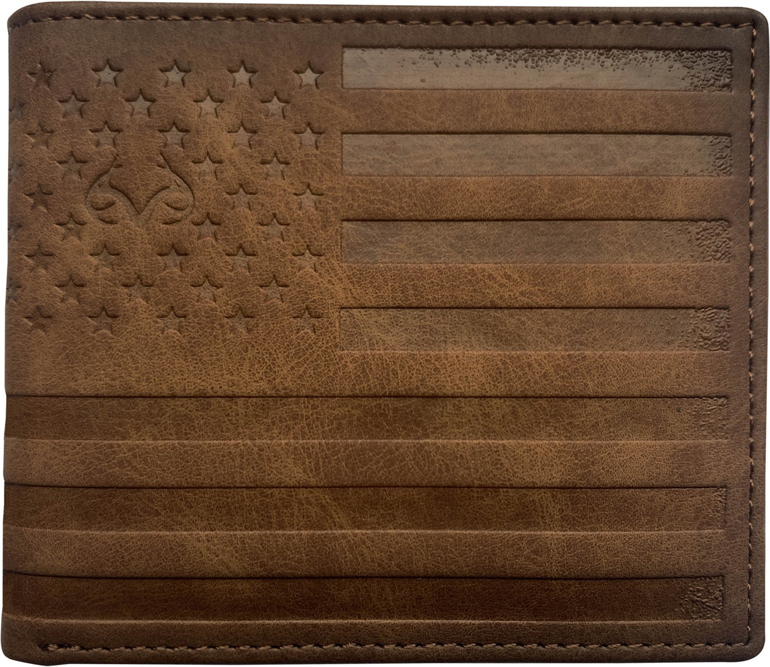Keep your money and cards handy in the Realtree Burnished Edge American Flag Bi-Fold Wallet. The embossed American flag and Realtree antler logo highlights an eye-catching appearance, and the leather/man made material delivers durability. The bi-fold design fits easily in your pocket.