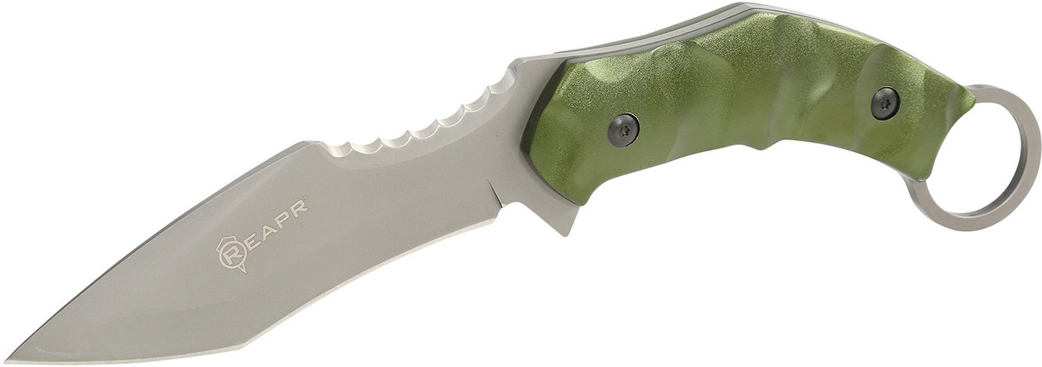 You'll be prepared to tackle a variety of tasks with the REAPR 11010 SLAMR Fixed Blade Knife. The 420 stainless-steel blade offers efficient cutting performance, and the oversize, textured anodized aluminum handle with a scalloped design gives you leverage and a comfortable hold. 4.75-inch blade length. 10.25-inch overall length.