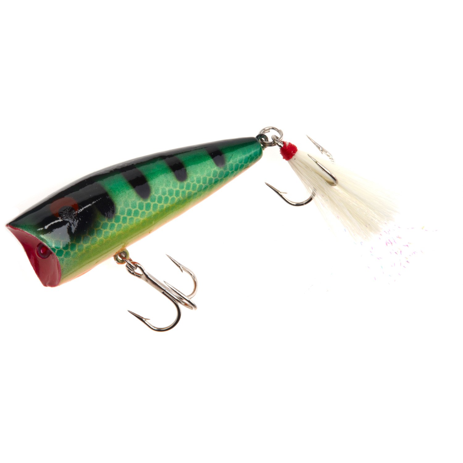 Bring in more freshwater fish with the high-quality Rebel Pop R 2-1/2" Topwater Bait. The size 6 double hooks help you secure catches. 1/4 oz.