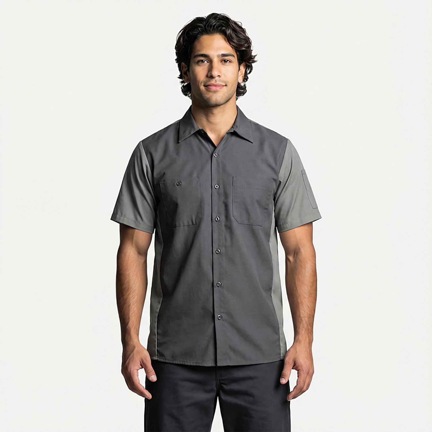 Maintain a professional appearance in the Red Kap Men's 2-Tone Crew Short Sleeve Shirt. Made of 65% polyester and 35% cotton, this shirt offers durability and comfort, while the wrinkle-resistant finish and Touchtexâ„¢ technology fabric provides a sharp, clean appearance.