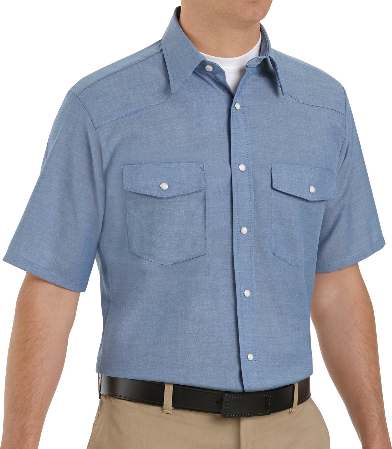 Head to work in Western style with the Red Kap Men's Deluxe Western Style Short Sleeve Work Shirt. This shirt is crafted from 65% polyester and 35% cotton chambray to help keep you comfortable on the job, while the 2 spade-style chest pockets provide space to carry small items.