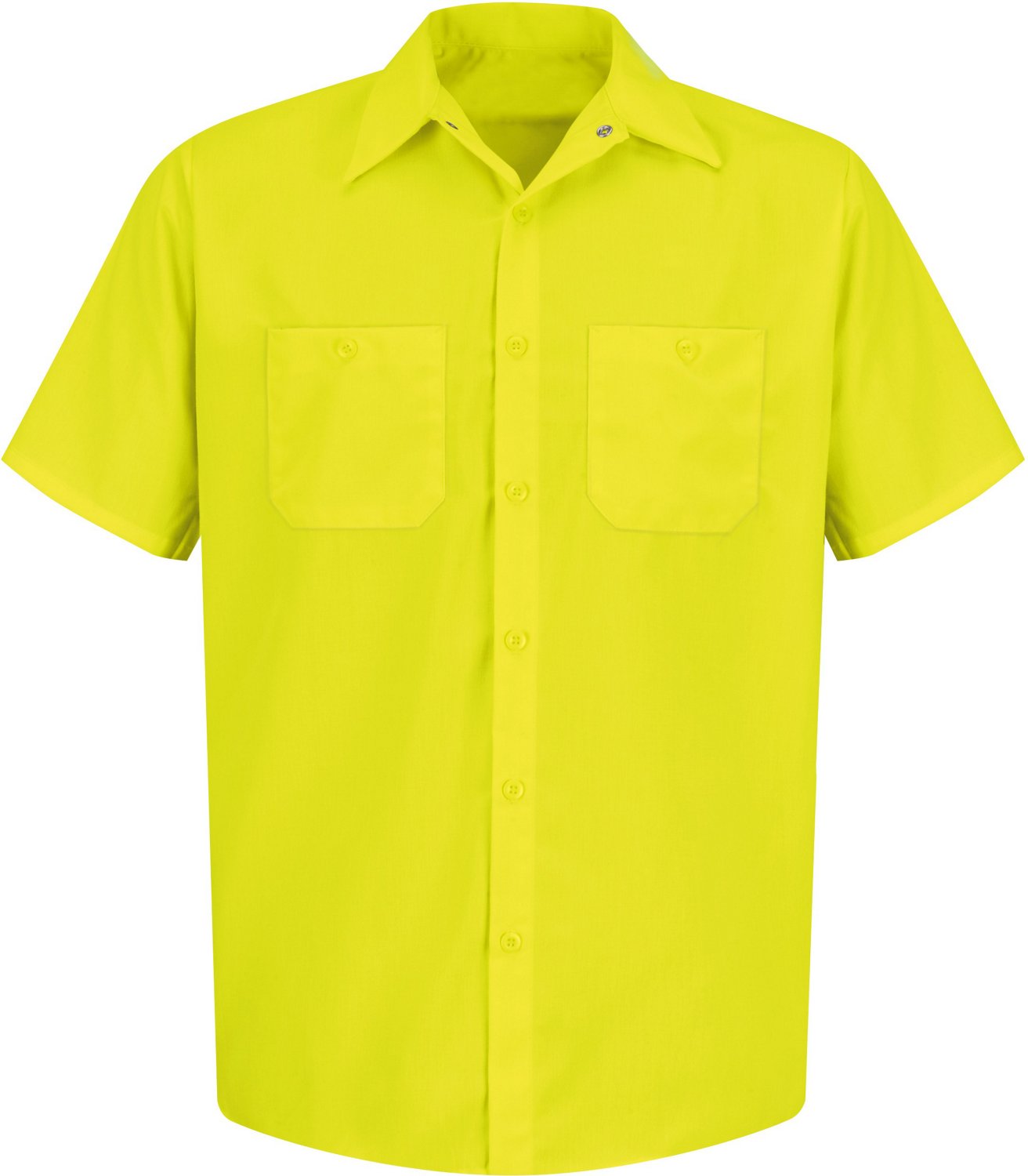 You'll be prepared for whatever the day brings in this Red Kap Men's Enhanced Visibility Short Sleeve Work Shirt. The bright fluorescent color helps keep you safe at the jobsite, while UPF 40 protection helps guard against the sun. Plus, the poplin fabric is specially treated to withstand wear and tear, dirt, sweat and odors, making it easy to get through each and every shift.