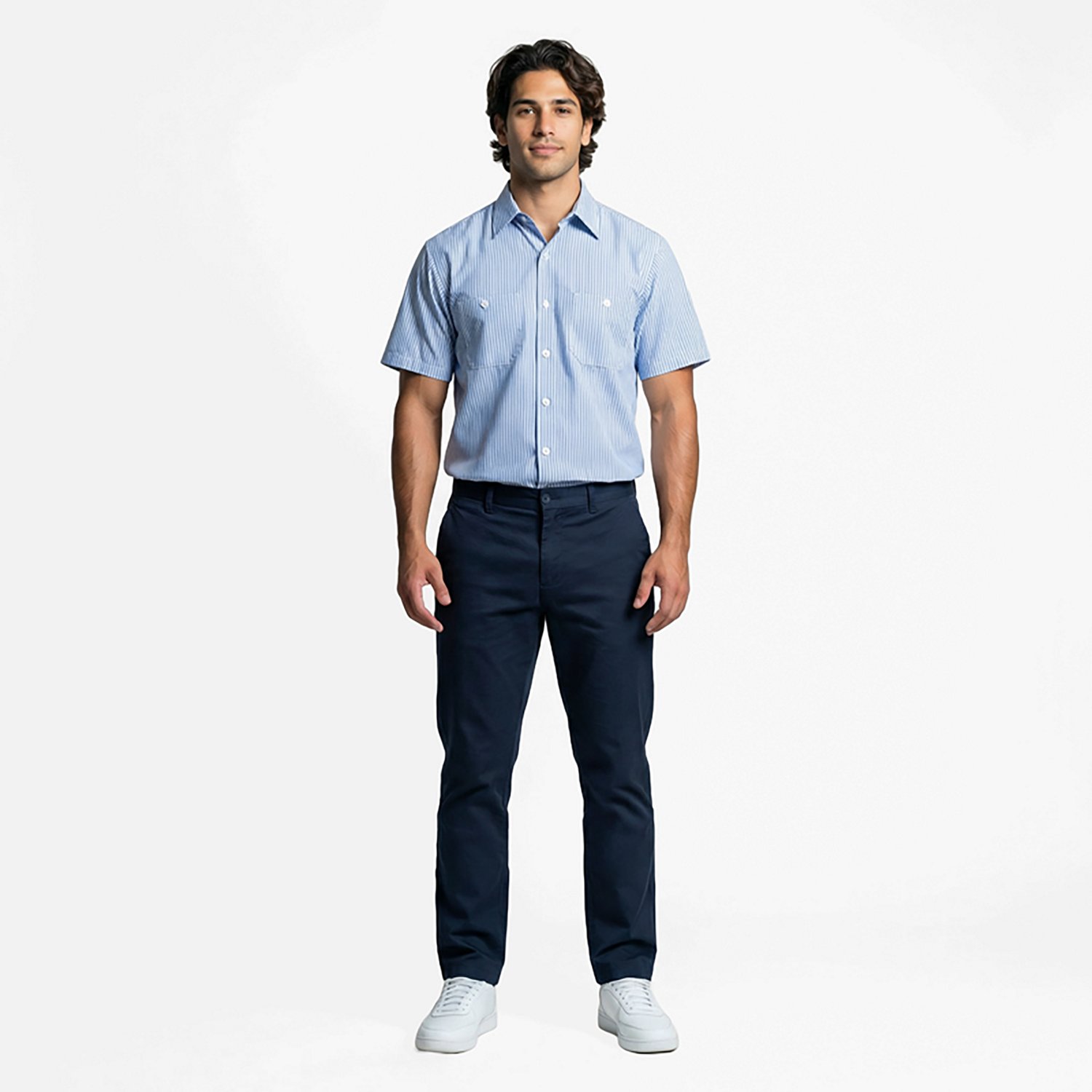 Look as professional as you work in the Red Kap Men's Industrial Stripe Long Sleeve Work Shirt. This long-sleeve work shirt is equipped with Touchtexâ„¢ Technology for breathable, stain-resistant performance, and the chest pockets, collar and subtle pinstripe pattern deliver a professional appearance.