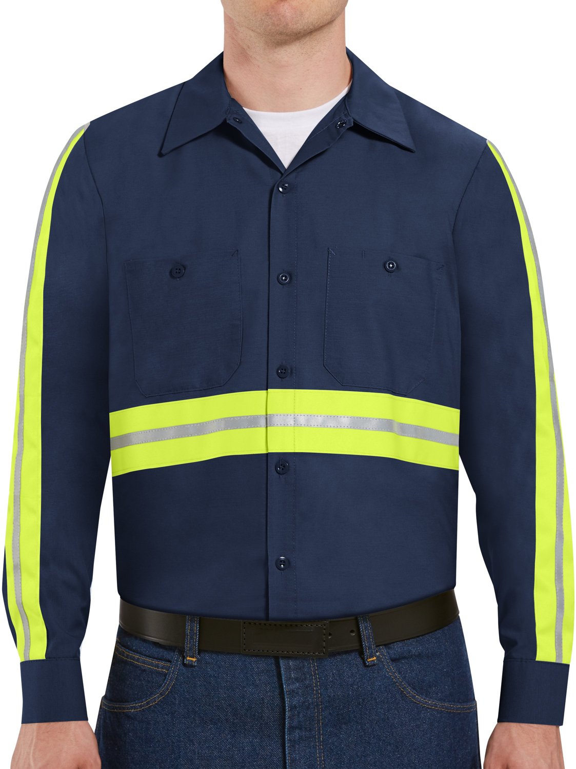 Red Kap Men's Long Sleeve Enhanced Visibility Industrial Work Shirt