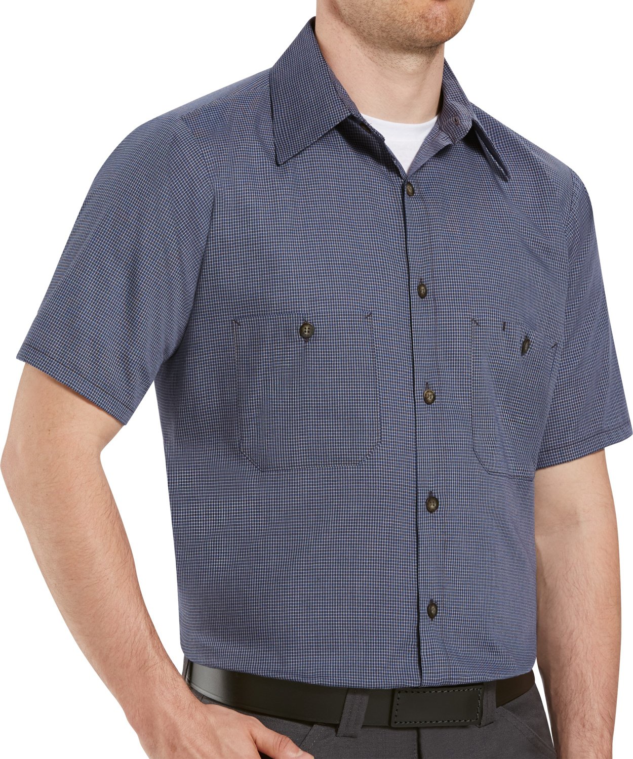 Show off your professional side with a touch of style in the Red Kap Men's Microcheck Uniform Work Shirt. Made from 65% polyester and 35% cotton poplin, this shirt offers durability and comfort, while the moisture-wicking finish helps keep you dry and cool. Plus, the Touchtexâ„¢ technology delivers color retention.