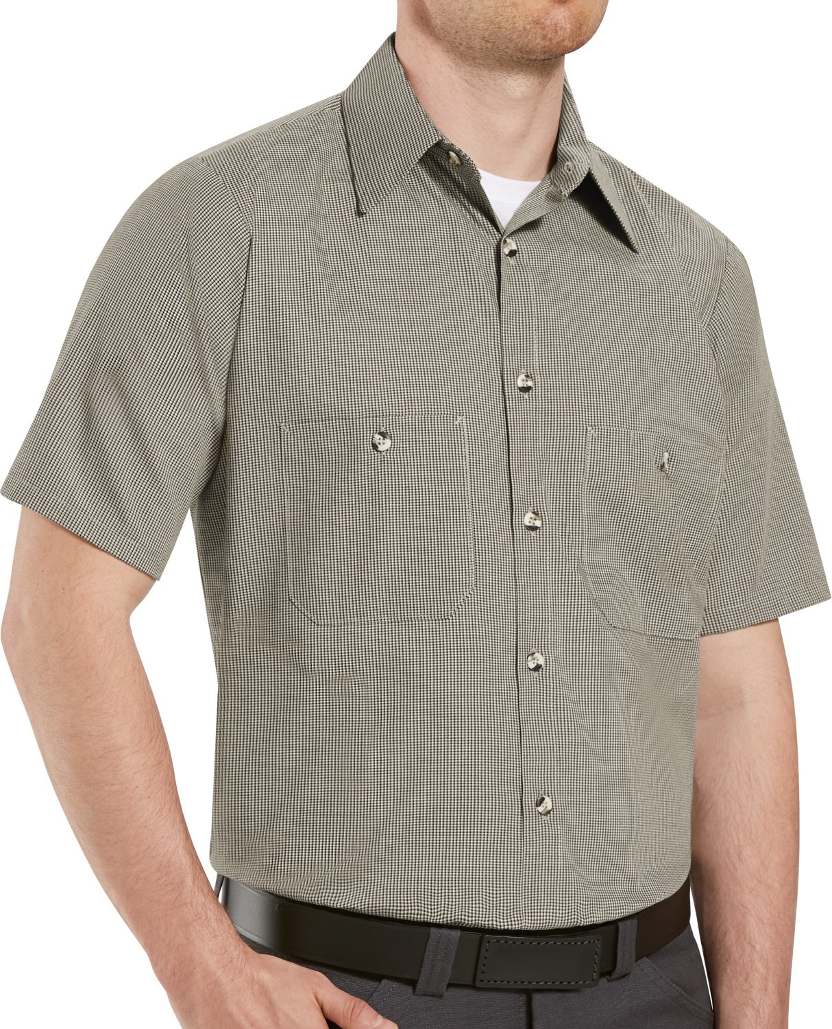 Show off your professional side with a touch of style in the Red Kap Men's Microcheck Uniform Work Shirt. Made from 65% polyester and 35% cotton poplin, this shirt offers durability and comfort, while the moisture-wicking finish helps keep you dry and cool. Plus, the Touchtexâ„¢ technology delivers color retention.