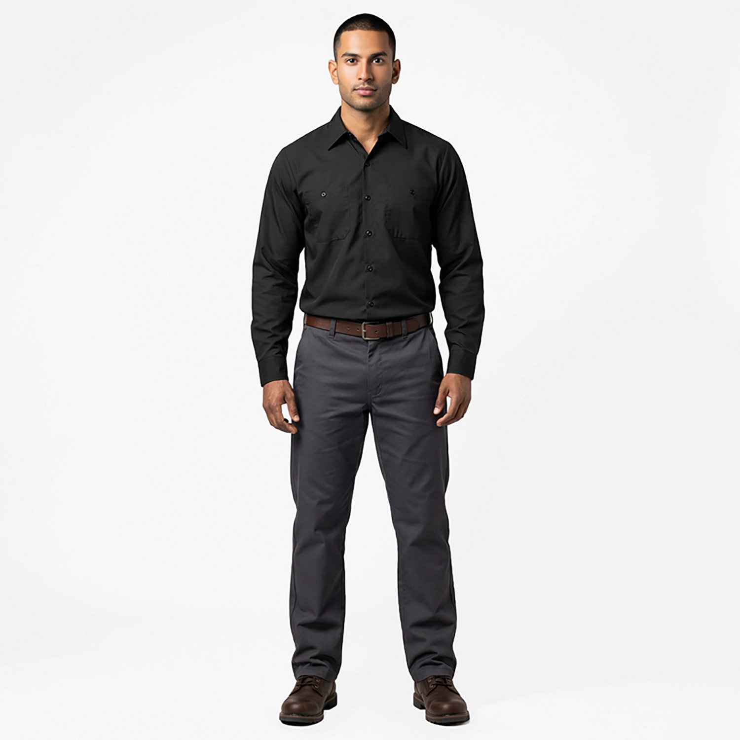 2 button-through, hex-style chest pockets with bar-tack stitching and a pencil stall in the left pocket