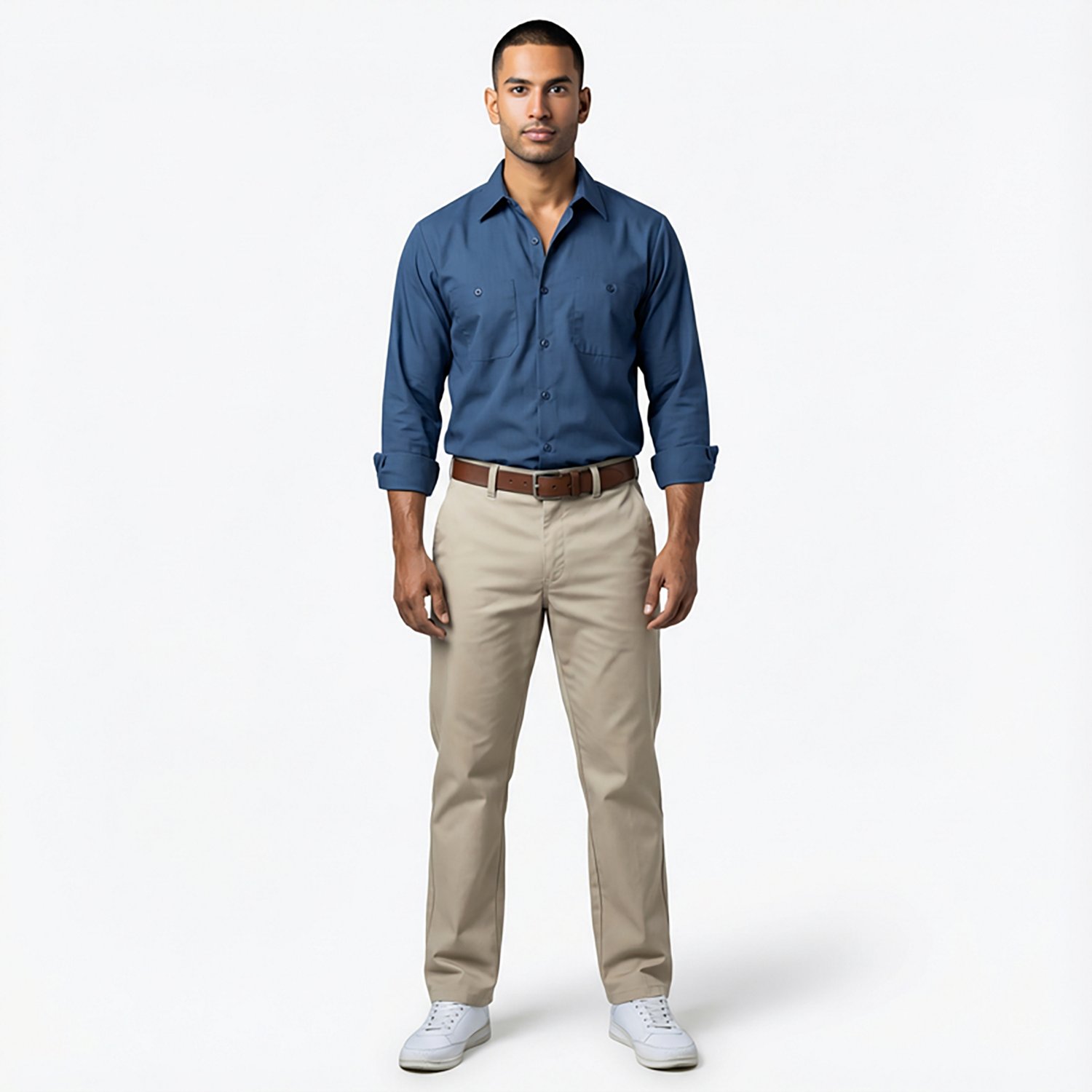 2 button-through, hex-style chest pockets with bar-tack stitching and a pencil stall in the left pocket