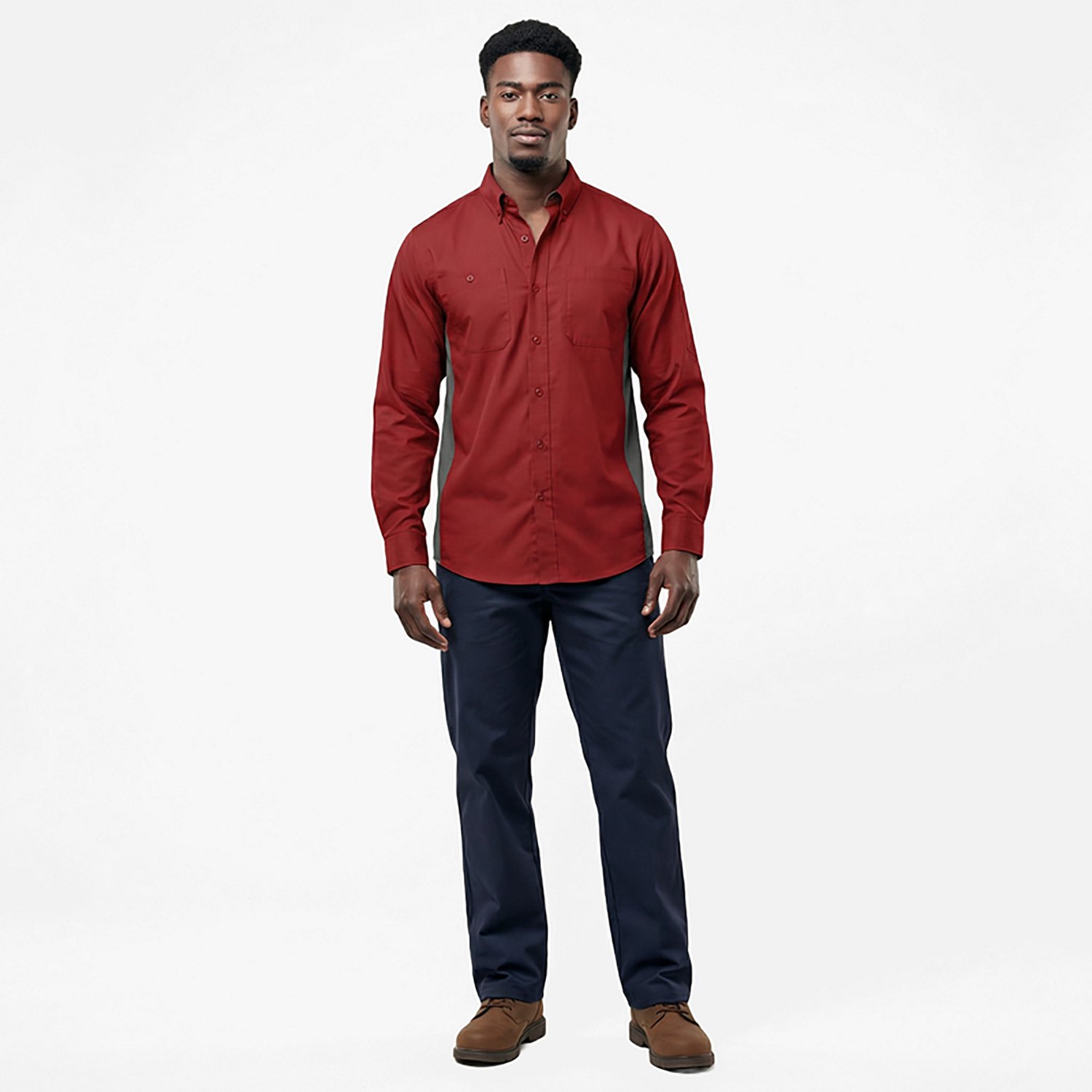 Whether you're in the office or on the floor, the Red Kap Men's Performance Plus Shop Long Sleeve Shirt with OilBlok Technology is a great choice. Made of 65% polyester and 35% cotton, this shirt provides durability and cotton, while OilBlok Technology helps repel auto fluids.