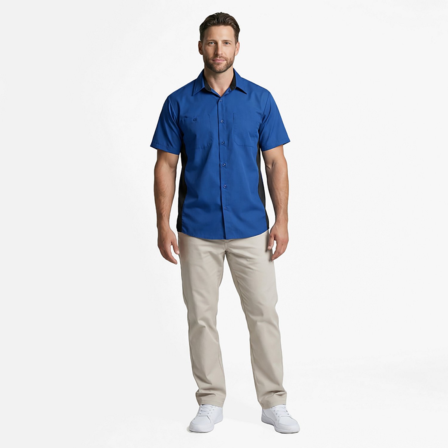 Whether you're in the office or on the floor, the Red Kap Men's Performance Plus Shop Short Sleeve Shirt with OilBlok Technology is a great choice. Made of 65% polyester and 35% cotton, this shirt provides durability and cotton, while OilBlok Technology helps repel auto fluids.