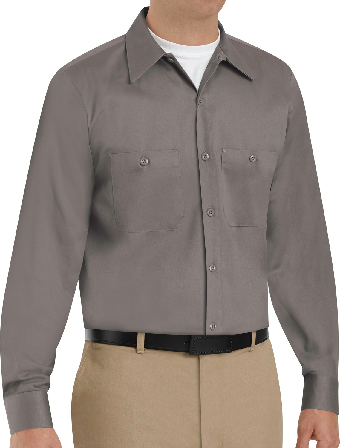 Complete the task at hand while wearing the Red Kap Men's Wrinkle Resistant Cotton Long Sleeve Work Shirt. Made from 100% cotton, this shirt offers comfort and is equipped with Touchtexâ„¢ Technology for stain resistance. The 2 chest pockets provide a secure place to carry your everyday items.