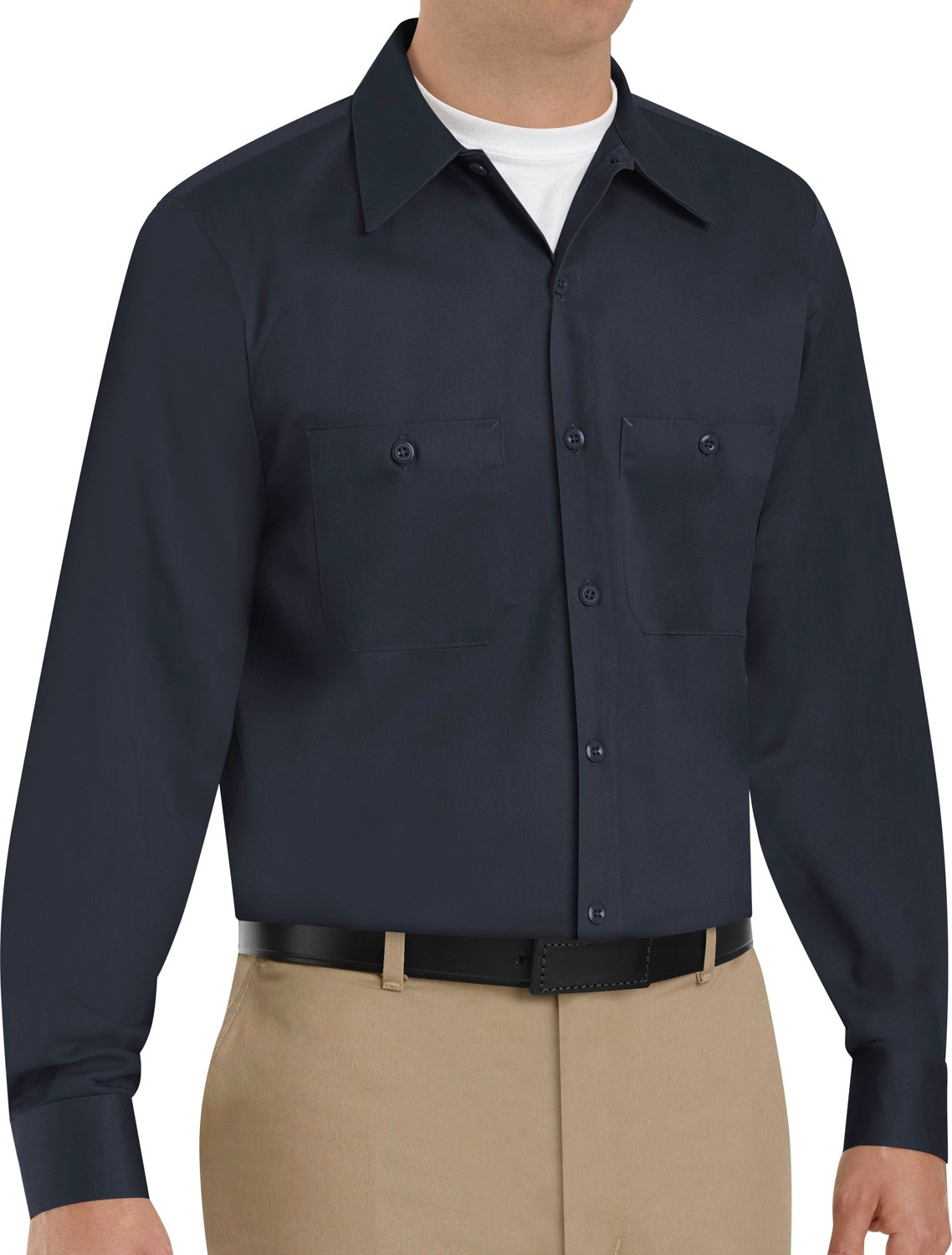 Complete the task at hand while wearing the Red Kap Men's Wrinkle Resistant Cotton Long Sleeve Work Shirt. Made from 100% cotton, this shirt offers comfort and is equipped with Touchtexâ„¢ Technology for stain resistance. The 2 chest pockets provide a secure place to carry your everyday items.