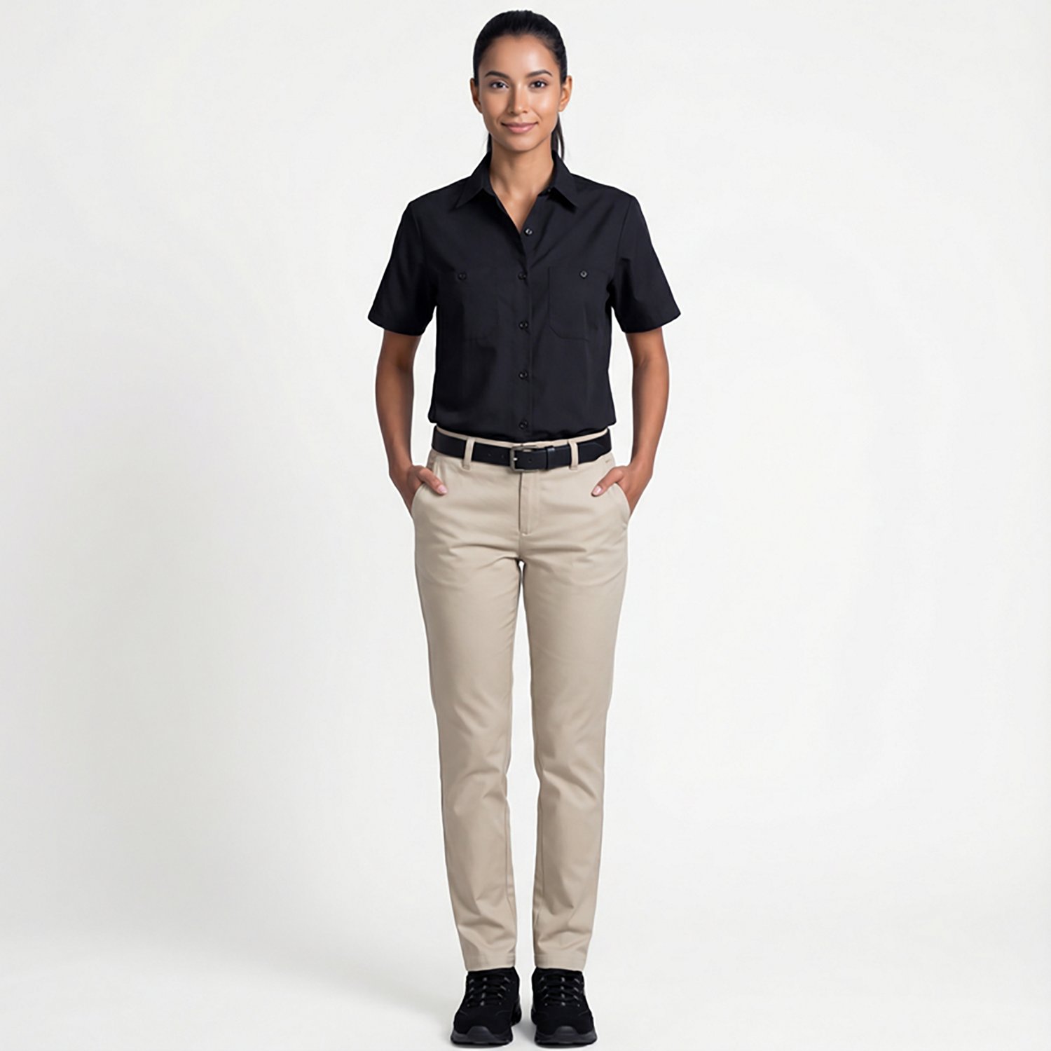 Maintain a professional appearance on the jobsite with the Red Kap Women's Industrial Short Sleeve Work Shirt. The 65% polyester and 35% cotton construction offers durability and comfort, while the wrinkle-resistant, moisture-wicking and soil-release technologies help keep you looking and feeling great.