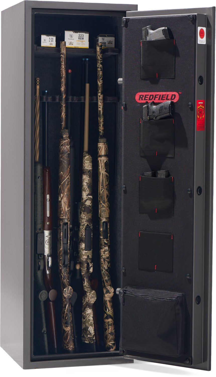 Keep your firearms secured with ease using the Redfield 18 + 4 Gun Safe. Made with 14 gauge steel with a powder-coat finish for durability, this gun safe comes with 5 locking points controlled by an electronic keypad to give you enhanced protection.