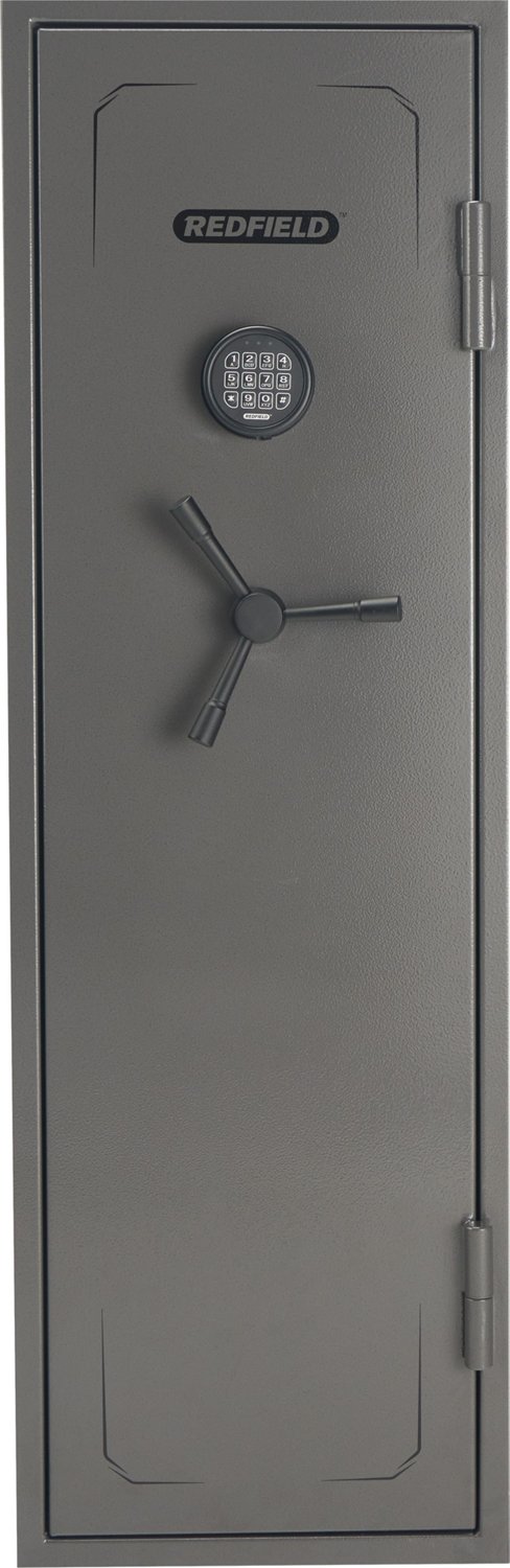 The Redfield 18-Gun Fireproof Safe offers a secure and durable storage solution for firearm enthusiasts. Constructed from 14-gauge steel, it provides lasting strength and protection. The electronic lock system, combined with five locking bolts, adds a layer of security, while the 3-spoke handle makes accessing your items convenient. With a fire protection rating of up to 40 minutes at 1,400°F, your valuables remain shielded in extreme conditions. The spacious interior holds up to 18 guns, and the compact external dimensions of 55" height, 17.5" width, and 18" depth make it easy to fit in most spaces. Ideal for hunting gear or firearm storage, this safe is a practical choice for secure organization.