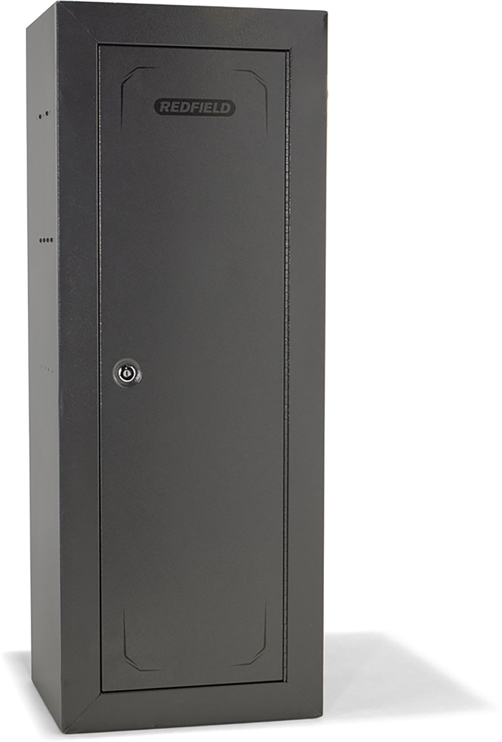 Safely store your rifles in the Redfield Divided 18-Gun Cabinet. The 18-gauge steel construction affords durability, while the keyed lock keeps contents secure. The cushion foam at the bottom helps protect your rifles, and the 8 predrilled mounting holes offer stable placement.