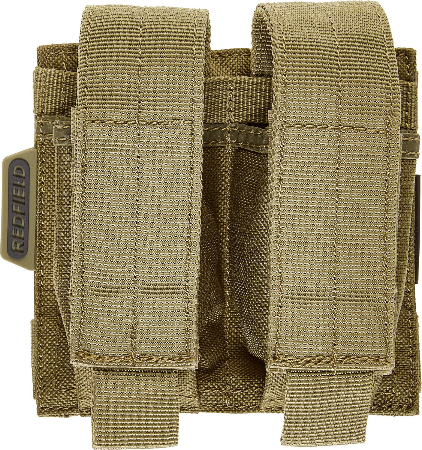 Stow an extra magazine or two with the Redfield Double Pistol Mag Pouch. PVC-backed polyester and polypropylene webbing make this pouch durable against everyday wear and tear. A hook and loop closure allow easy access to your magazine, while MOLLE compatible attachments let you secure the pouch to a range backpack or gun case.