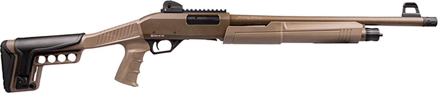 Arm yourself with the Redfield Drive HD 12 Gauge Pump Action Shotgun. It is pump action with a 5-round magazine capacity. The Cerakoted barrel is 18.5-inches long, and it is equipped with a fiber-optic front sight and ghost ring rear sight. The pistol grip finishes off the design.
