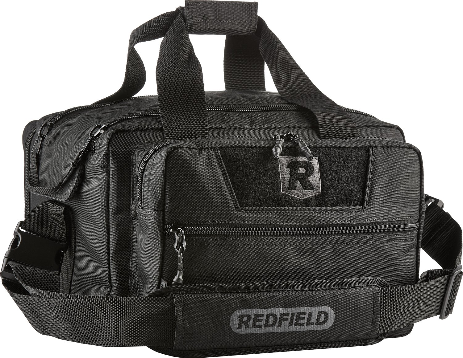 Secure guns for travel with the Redfield Marksmen Range Bag. This sturdy bag is made of 600 denier polyester with a PVC backing and reinforced stitching. An attached brass bag stows spent brass for keeping or dumping, while a removable inner bag lets you travel light when you have less to carry.
