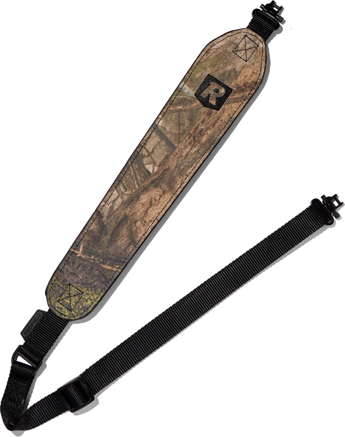 Carry your rifle with the Redfield Padded Camo Gun Sling. The polyester and nylon material offers durability, while the suede nonslip shoulder pad and multipoint adjustable strap allow for comfortable carrying.
