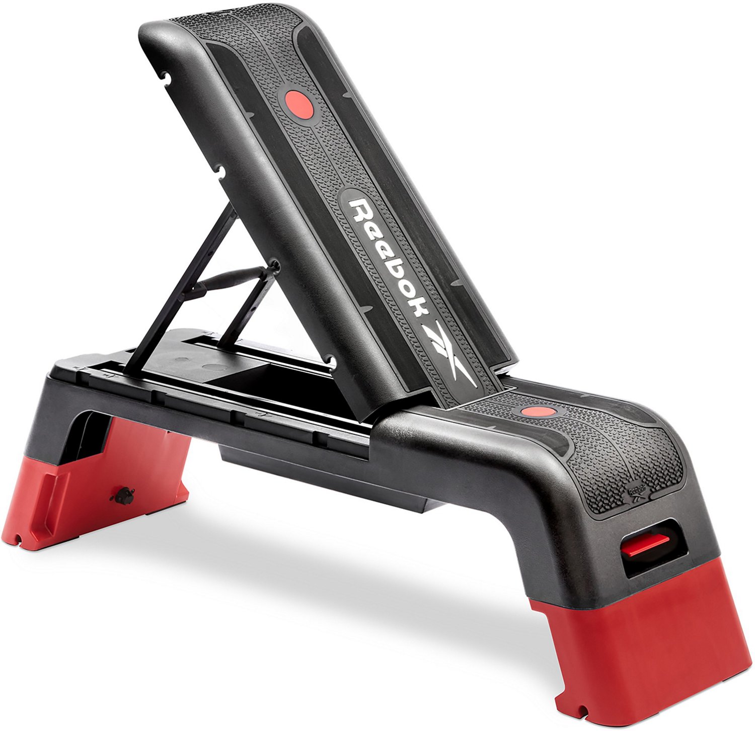 The Reebok Deck combines aerobic and strength training to give you a full-body workout. This completely adaptable platform has more than 20 setup combinations, including incline, decline and flat bench configurations so you can workout in multiple ways. The multi-textured workout surface provides targeted grip and cushioned comfort, while the 12 slip-resistant rubber feet provide a stable workout platform.