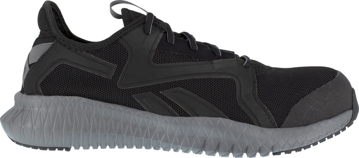 Keep your feet comfortable and protected during work in the Reebok Men's Flexagon 3.0 Athletic Work Shoes. These shoes feature synthetic uppers with steel toes for durability and added protection. The origami-inspired EVA foam midsoles and MemoryTech Memory Foam footbeds allow for max comfort throughout the day.