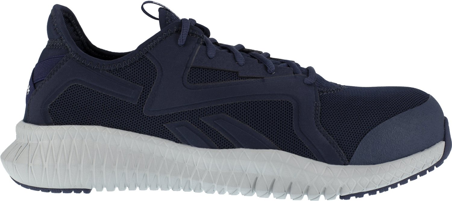 Keep your feet comfortable and protected during work in the Reebok Men's Flexagon 3.0 Athletic Work Shoes. These shoes feature synthetic uppers with steel toes for durability and added protection. The origami-inspired EVA foam midsoles and MemoryTech Memory Foam footbeds allow for max comfort throughout the day.