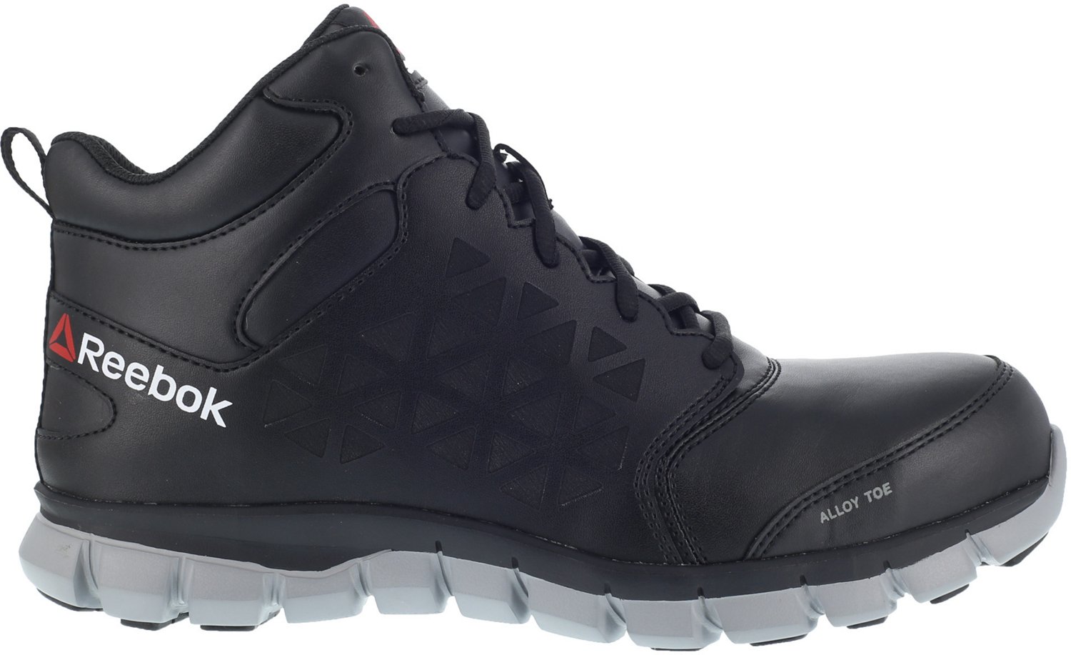 Made from leather, alloy and rubber materials, the Reebok Men's SubLite Cushion Mid EH Alloy Toe Lace Up Work Shoes are a lightweight option for the workplace. MemoryTech Massage footbeds offer continuous comfort and full-foot flex grooves make it easy to move, even on wet and oily surfaces. EH and ASTM F2413 rated.